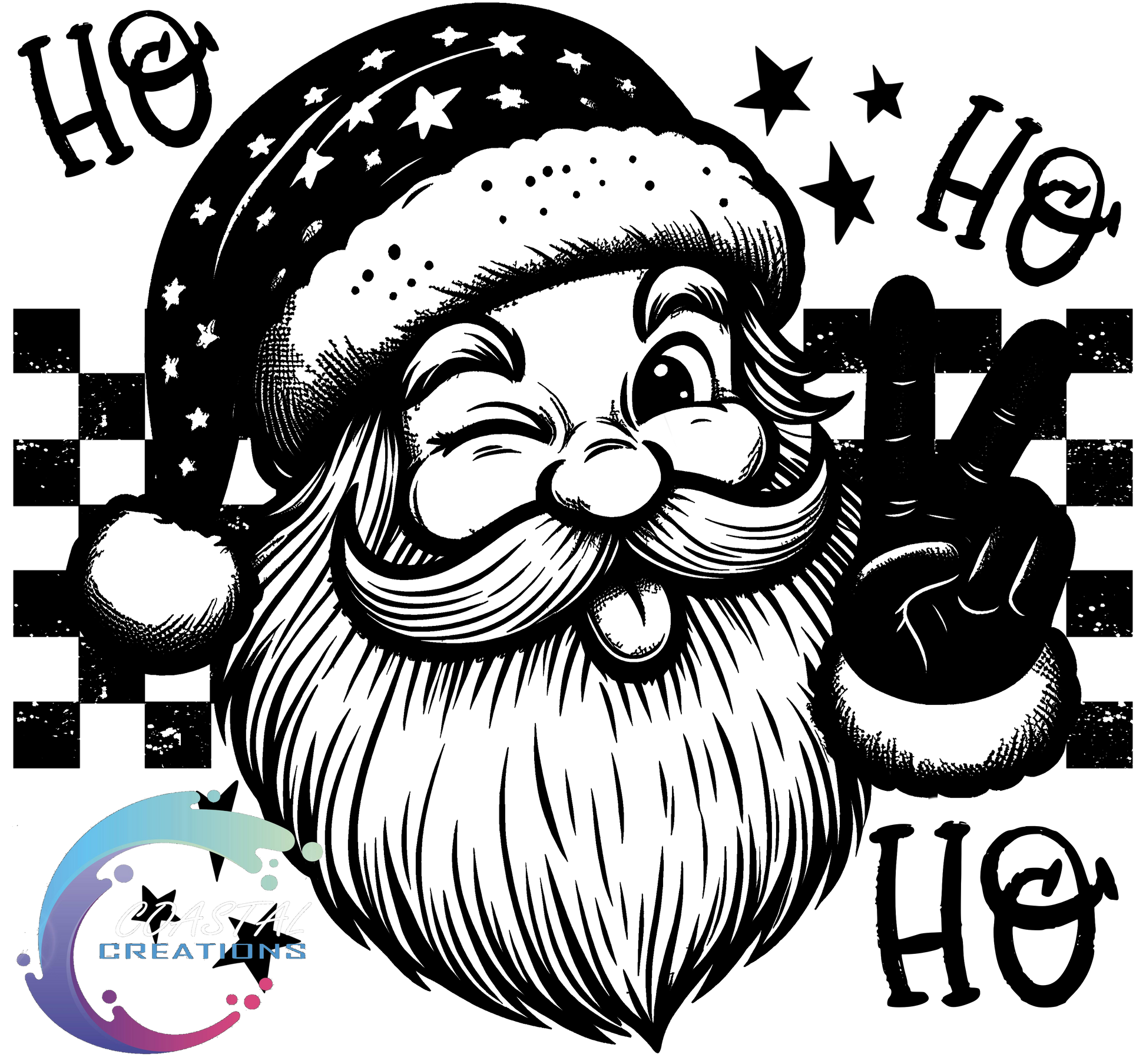 Black and White Santa Ho Ho Ho DTF