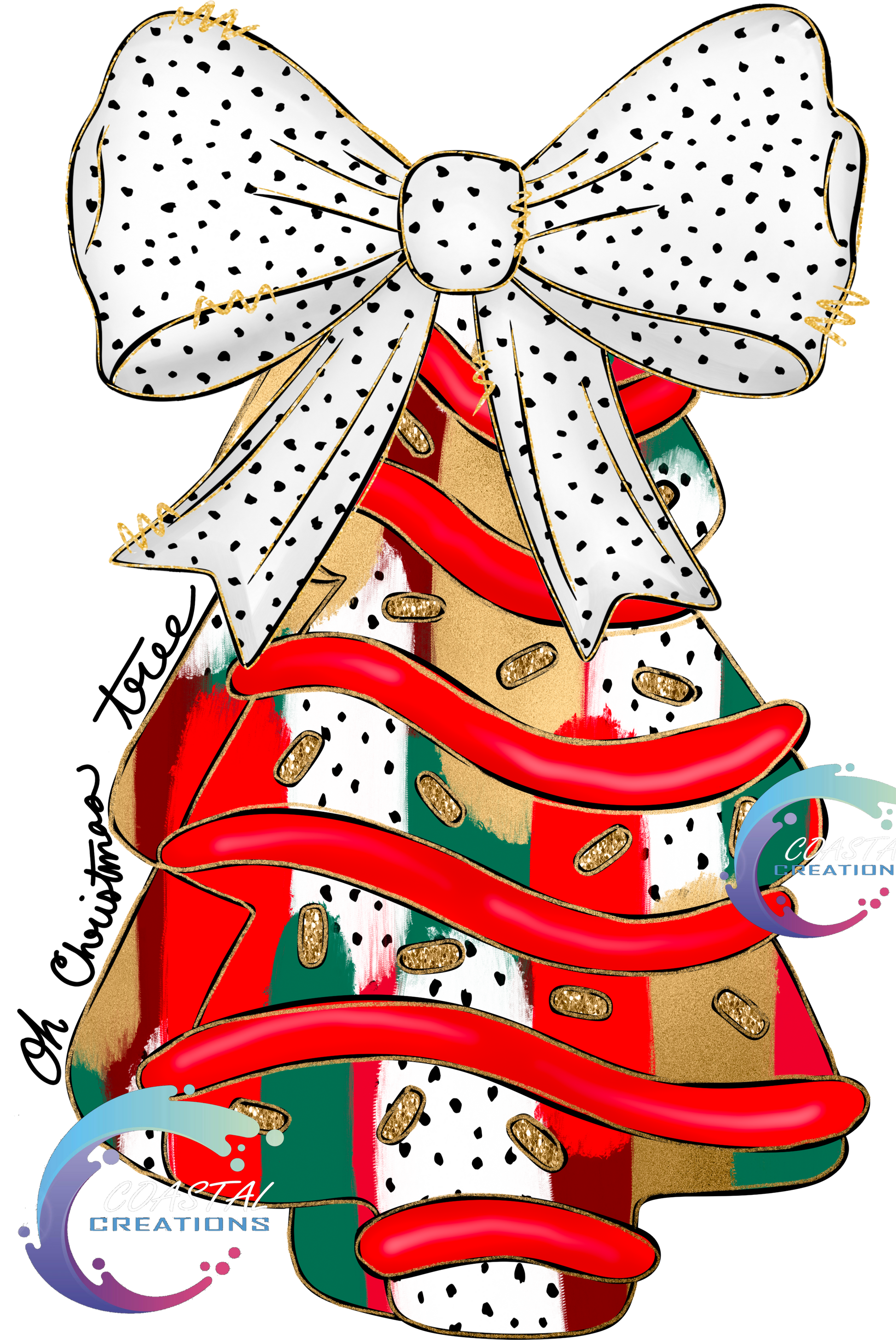 Oh Christmas Tree Poke A Dot Red and Green Brush Stroke DTF