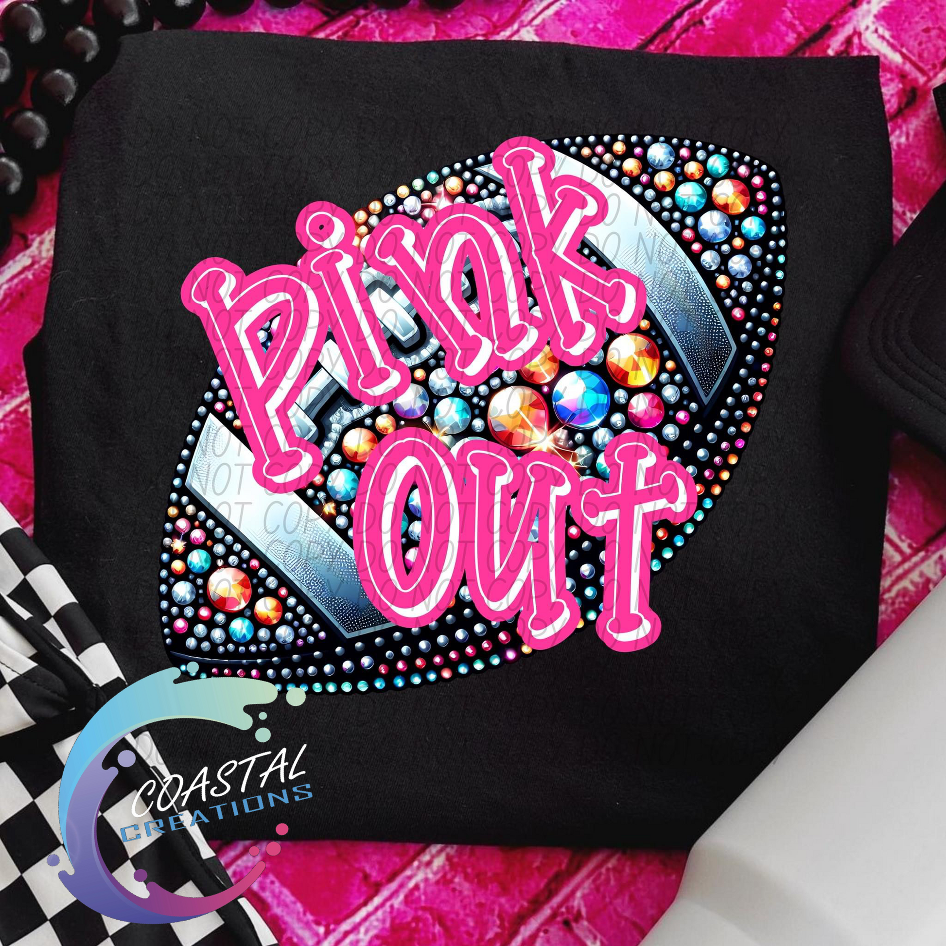 Pink Out Faux Rhinestone Football